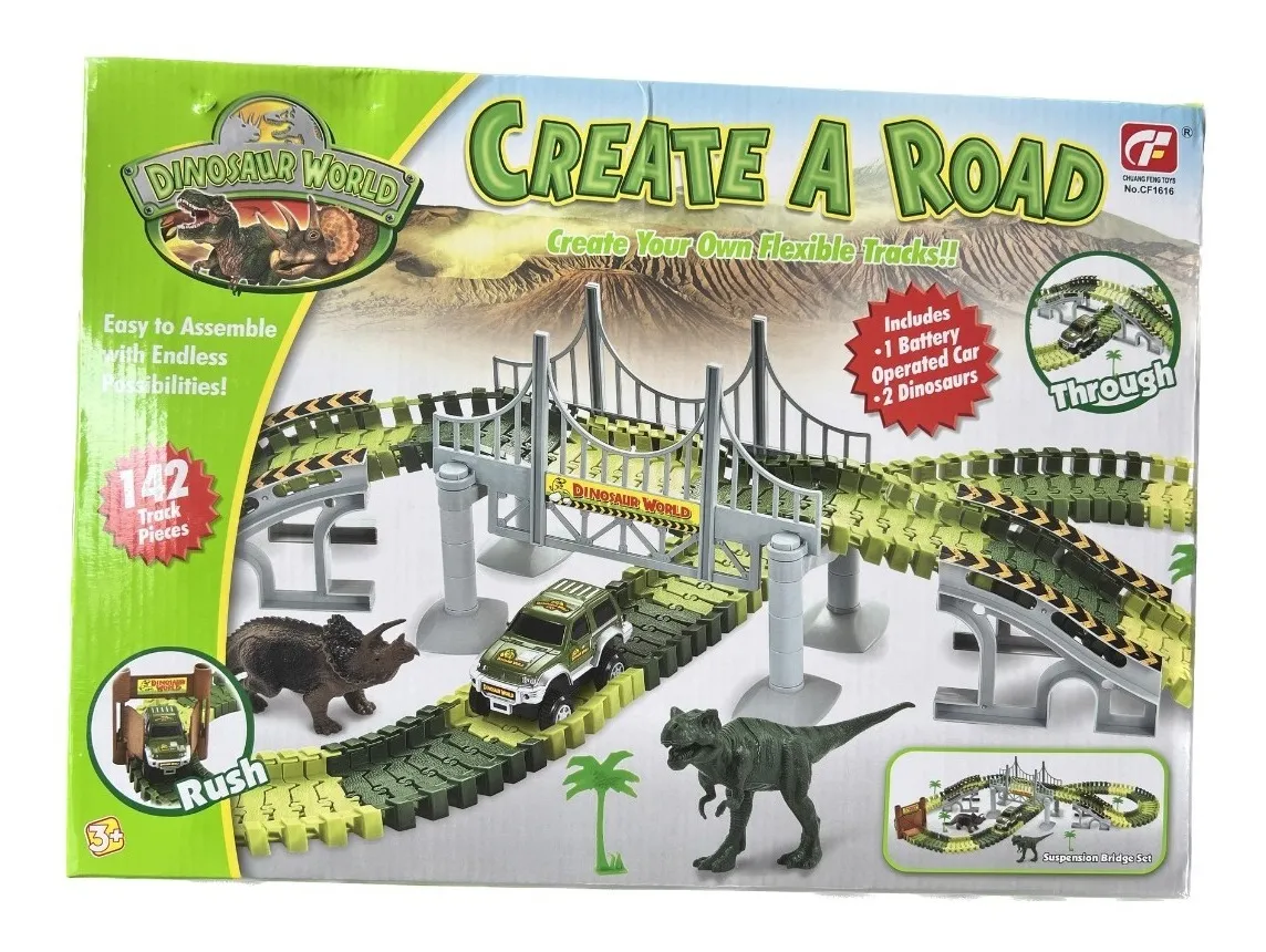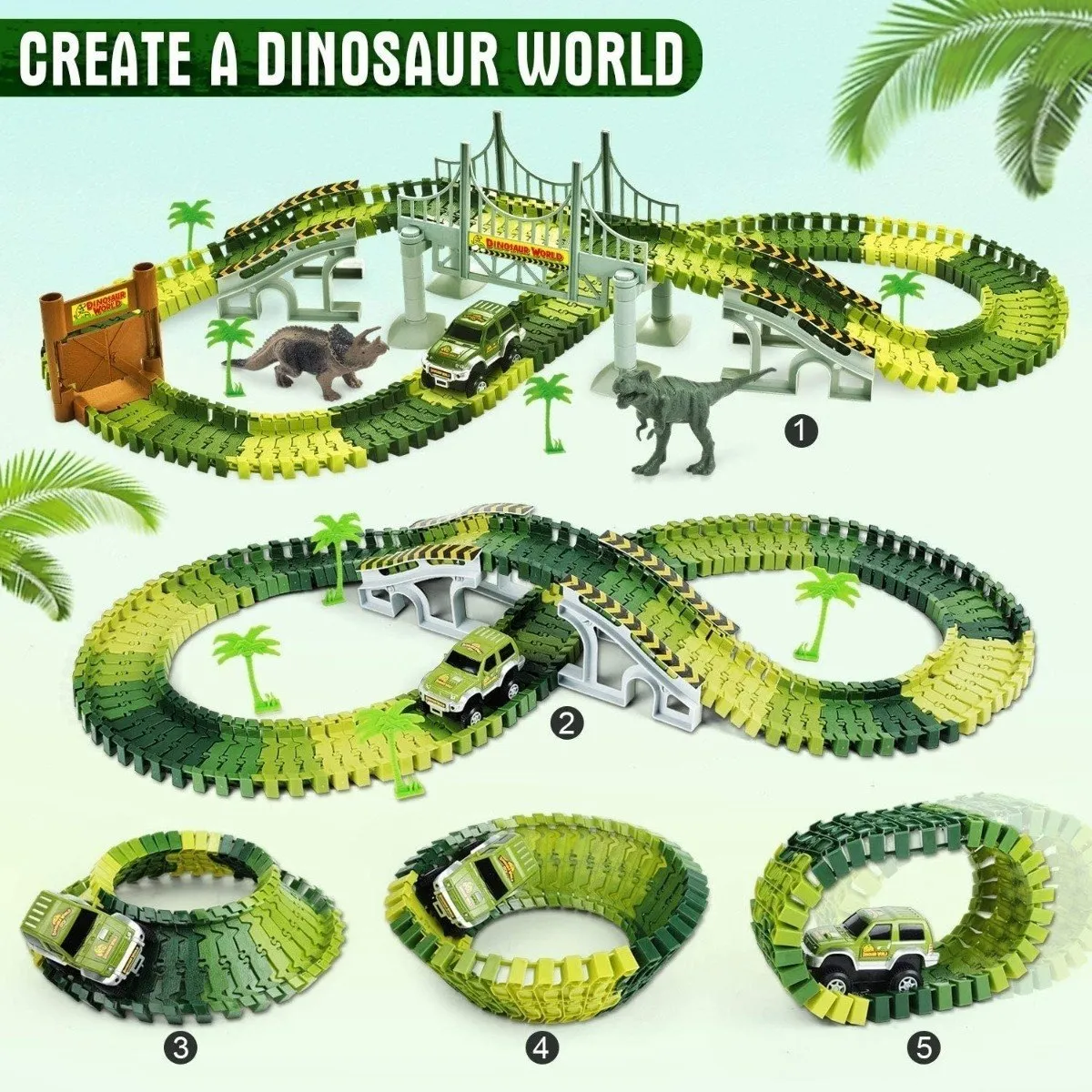 Este set de pista de carros con dinosaurio le dará a los niños días enteros llenos de diversión y esparcimiento. Acompaña a los niños a ensamblar la pista y diviértete con ellos simulando carreras. Es el regalo ideal para los pequeños ya que pueden desarrollar habilidades sociales, cognitivas participando y simulando diferentes carreras y huyendo de los dinosaurios en compañía de sus amigos.